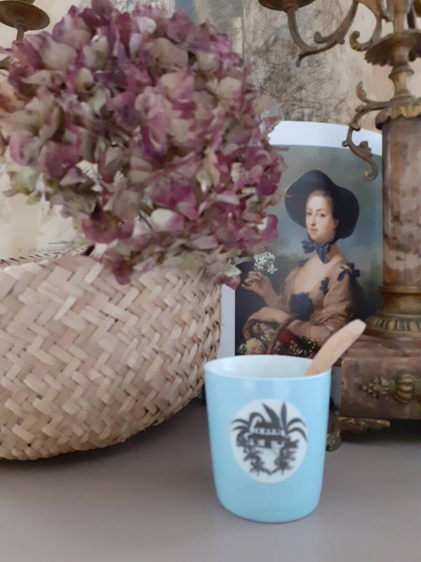 Joli Verre/Gobelet peint main en porcelaine de limoges motif " maison exotique fond noir" flora Coloris