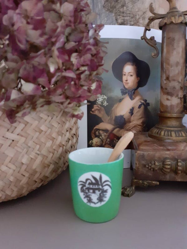 Joli Verre/Gobelet peint main en porcelaine de limoges motif " maison exotique fond noir" flora Coloris