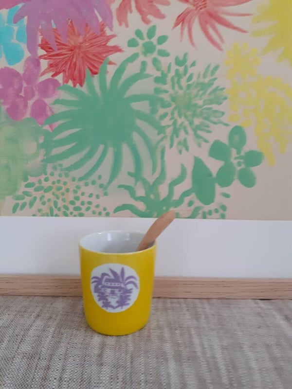 ensemble de 6 jolis petits verres/ gobelets à café couleurs Printemps-été ( ) peint main , en porcelaine de limoges, flora coloris