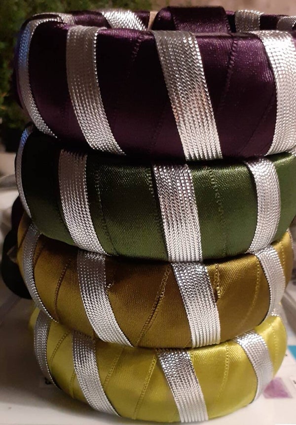 bracelets joncs impermeabilisés en tissu satin et metallisé couleur argent en plusieurs couleurs au choix cf: palette choix couleurs et deux tailles GM 45 euros/ PM 25 euros