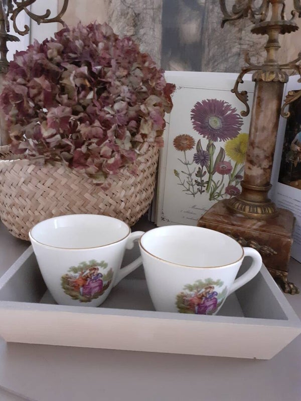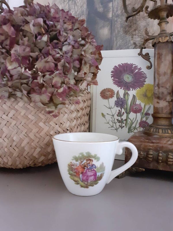 Jolie tasse sans soucoupe en faience, motif Fragonard, vintage, ( Le Bouquet)