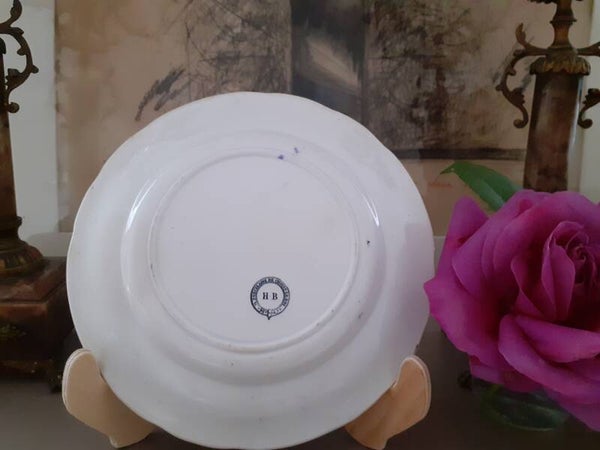Jolie Assiette imprimée, decor en noir et blanc representant "Philippe de Girard 1775-1845" sur l'aile decor mauve pale representant les attributs de l'industrie et du commerce