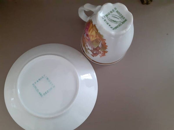 Jolie Tasse à café et soucoupe, motif"Fragonard" ( Le Musicien) en porcelaine de limoges